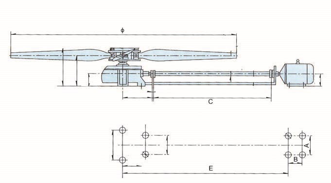 冷卻塔風機由葉片、輪轂、擋風板、減速器、傳動軸、電機組成,現(xiàn)將各部件介紹如下: