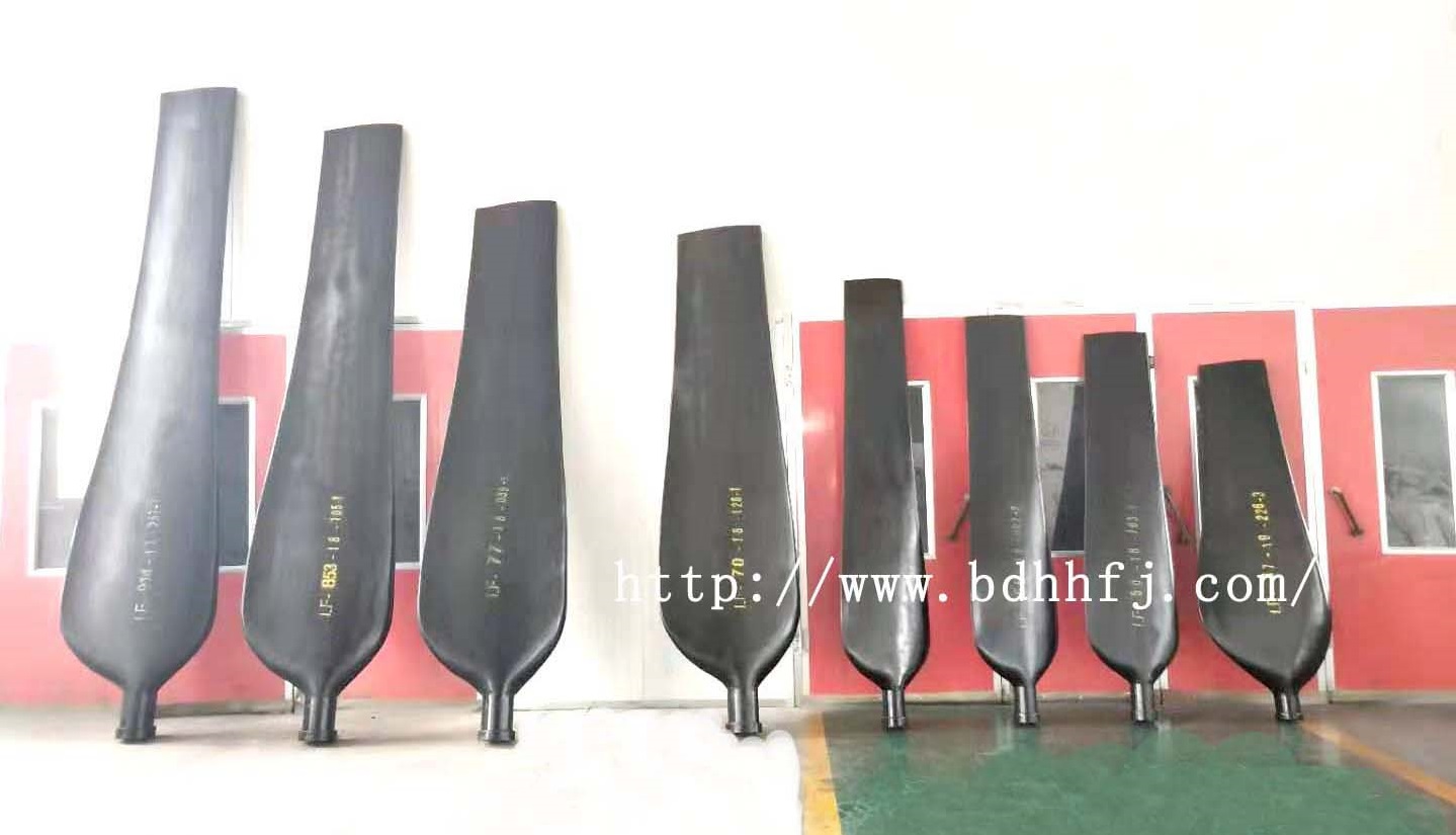 葉片外形設計采用機翼翼型,葉片由高玻璃鋼模壓而成,具有強度高、重量輕、耐腐蝕、裝拆方便等優(yōu)點。每片葉片成型后,均進行大力矩調(diào)整,確保風機可互換。